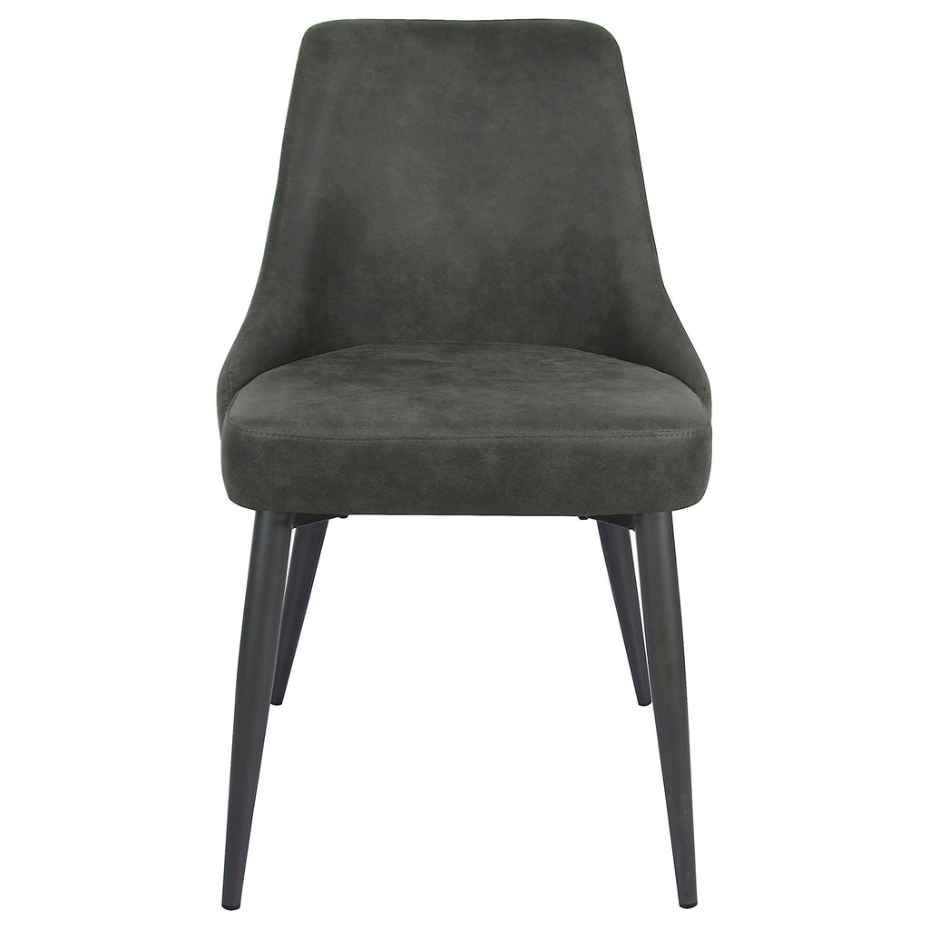 Blending mid-century inspiration with classic charm, this dining side chair is a stylish and versatile addition to any dining space. The gently curved backrest features elegant button tufting on the exterior and a smooth, cushioned interior for a refined look. A soft fabric upholstery provides a comfortable seating experience, while the slim tapered metal legs in a gunmetal powder-coated finish add a modern touch. Ideal for compact spaces, this chair offers both style and function. Key Features: • Dining side chair with a sleek, mid-century modern-inspired silhouette • Light grey fabric upholstery enhances its soft and inviting aesthetic • Elegant button-tufted backrest with smooth cushioned interior for comfort • Tapered metal legs in a gunmetal powder-coated finish for a modern touch • Ergonomic design with sloping arms and a gently curved backrest • Versatile style blends effortlessly with contemporary and transitional décor