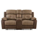 Rest and relaxation are on the list of things to do this weekend and the Glendale Collection is here to help. Plush seating is paired with a gentle gliding motion making your downtime a comfortable experience. Offered in brown polished microfiber, the collection features contoured seating, and plush arms. The love seat has dual glider reclining ends as well as manual motion mechanisms which operate with the pull of a side-mounted tab, that once engaged, takes you from seated to reclined in an easy motion. The love seat also features a center console with cup holders and hidden storage. 73 x 39 x 40.5H
