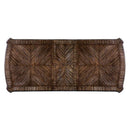 ARCADIA Rustic Natural Tone, Ivory Dining Table, 96"(78" + 1 X 18"Leaf) L X 44"W X 30 1/2"H, 204.8lbs. Beautiful wood inlay details and a dramatic double pedestal base create a grand statement with elegance galore. The ivory fabric upholstery provides a stunning contrast against the rustic natural tone finish for a look that is as cozy as it is chic. Intricate leg designs play beautifully off the delicately cut backs for a look that will inspire and amaze. Features: Transitional Style 18" Expandable Leaf Intricate Wood Inlay Details Double Pedestals Center Support Beam Padded Ivory Fabric Cushions Solid Wood, Wood Veneer, Others Rustic Natural Tone Finish