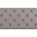 Soft, sweeping curves define the elegant profile of the Baylesford Collection. The California King bed is softened by an antique white rub-through finish creating a romantic aesthetic will place beautifully within your bedroom. Dark gray pleated, button-tufted fabric provides stunning contrast to the look of the bed. 82.75 x 92.5 x 70H