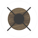 Bring a touch of modern farmhouse style to your living room with this coffee table set, blending sleek metal frames with warm wood accents. The set features a striking design with round tempered glass tops, offering a sophisticated contrast to the black powder-coated metal frames. Each table includes a lower tray-style shelf with a brown wood grain laminate veneer finish, perfect for displaying decor or storing essentials. The sturdy metal construction ensures long-lasting durability, while the minimalist aesthetic complements various living spaces.