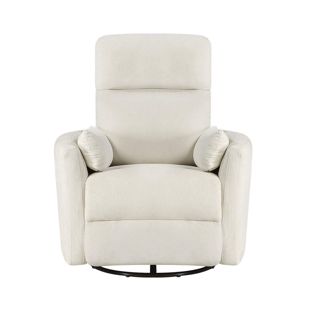 Discover the ultimate in multi-functional relaxation with this luxurious beige swivel glider reclining chair. Built on a durable plywood frame reinforced with metal, this recliner is engineered for supreme comfort, featuring foam cushioning layered over supportive pocket coils. The chair is wrapped in soft, highly durable textured microfiber upholstery, offering a cozy feel and easy maintenance. Combining three essential motions—a smooth recline via an easy-to-use tab pull, a gentle gliding motion, and a full 360-degree swivel—this chair is perfect for the living room, nursery, or entertainment area. With its versatile style and comprehensive comfort features, this chair instantly becomes the most coveted seat in your home.