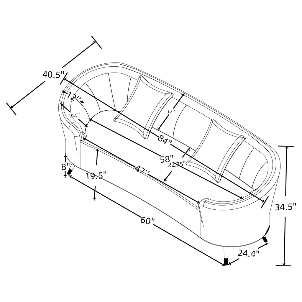 The gentle curvature of a kidney silhouette brings graceful energy to this two-piece modern sofa set. A smooth bench seat is complemented with a channel tufted back in both the sofa and loveseat, creating stylish ambiance and comfortable seating. Soft beige upholstery fabric sets the tone, while accent pillows add flexible comfort and inviting ambiance. The set shows off a tailored profile, complete with a shelter back and sloping arms. Each piece stands on slender, tapered legs in a black finish, offering a touch of contrast and depth in your living room. Key Features: • Soft beige upholstery creates a bright, inviting ambiance for a modern sofa and loveseat set • Curved kidney silhouette features widely spaced channel tufting for texture and depth • Fully encased solid and engineered wood frame provides lasting durability and reliability • Features attached cushions with accent pillows included for added comfort and flexibility • Seats feature pocket coils and sinuous springs, creating durability and comfort in your home