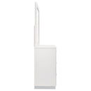 This dresser and mirror set brings streamlined function to contemporary bedrooms. The six-drawer dresser offers ample storage with smooth metal extension glides, while the mirror features a white high gloss frame that reflects light and complements the dresser’s modern silhouette. Chrome-finished handles and feet enhance the look with refined detail, making this set a practical yet stylish addition to your space.