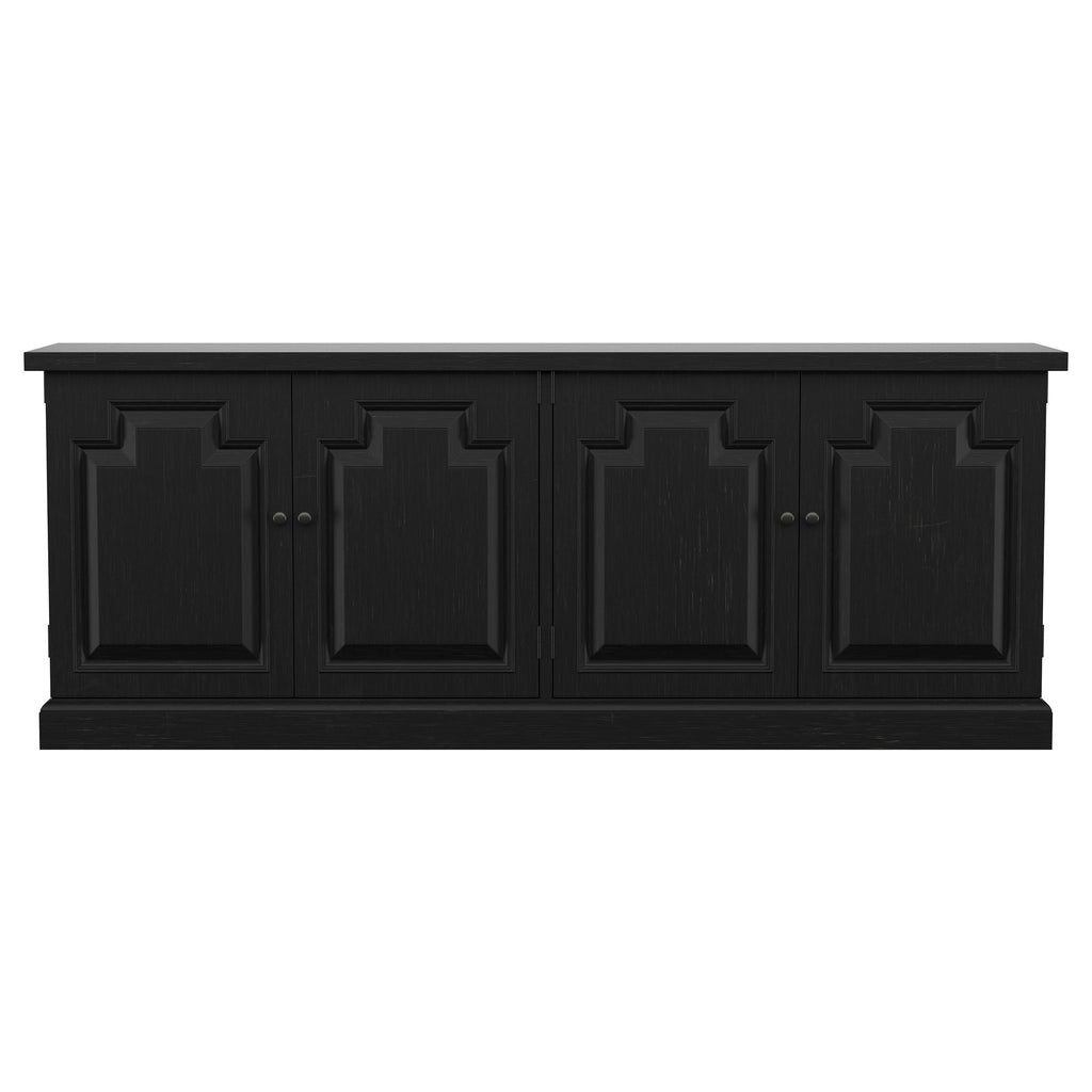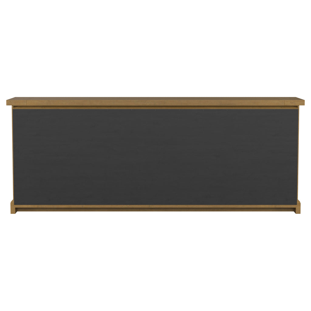 This four-door sideboard offers a refined blend of storage and style, perfect for dining and entertaining spaces. Crafted from pine, plywood, and pine veneer, it features a beautifully planked top that enhances its rustic charm. Raised panel doors lend a classic, sophisticated appeal, while the spacious interior includes two nested drawers with self-closing metal slides for effortless organization. This versatile piece functions beautifully as a server, providing ample space for dishware and linens. With its elegant craftsmanship, it also serves as a buffet, adding both convenience and timeless appeal to any home. Key Features: • Four-door sideboard with raised panel doors for a classic, textured look • Pine, plywood, and pine veneer construction ensures lasting durability • Planked top highlights the natural grain with a rustic honey finish • Spacious interior storage includes two nested drawers for organization • Self-closing metal slides ensure smooth and effortless drawer operation • Warm rustic honey tone enhances farmhouse and traditional decor