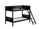 Space-saving with a clean and minimalist aesthetic, this youth bunk bed features a modern style frame that lends a masculine vibe. Perfect for making more floor space, this bunk bed offers a square design with a straight headboard and footboard, each with a slim notched out space. Available in several colors, this bunk bed complements any room's current color palette. An angled ladder allows kids to get to the top bunk, which also offers secure guardrails on each side. The bunk bed can be separated into two to create side by side beds as well.