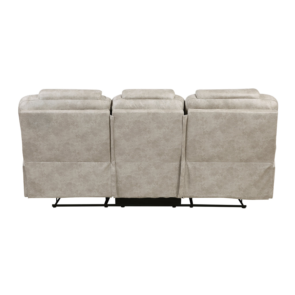 Creating a space that welcomes your friends and family to have a seat and settle in comes in the form of the Gainesville Collection. The sofa, love seat, and chair are offered in chocolate-hued polished microfiber, with contrast stitching, making this collection a versatile transitional style option for your living room. Manual motion mechanisms operate with the pull of a side-mounted tab, that once engaged, takes you from seated to reclined in an easy motion. The sofa features dual reclining ends, as does the love seat. The love seat’s center console features ample beverage containment with cupholders, as well as featuring a hidden storage compartment. The available glider chair fully reclines and is perfect as an accompaniment to the collection or as a stand-alone piece.