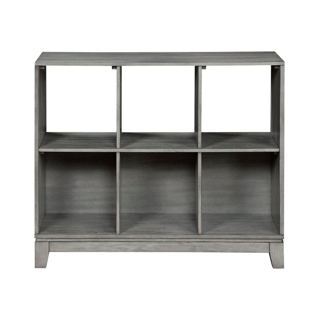 The Garretson Collection blends transitional lines with rustic styling to create an elegant addition for your bedroom. The okume veneer of the 6-shelf bookcase features a gray finish.