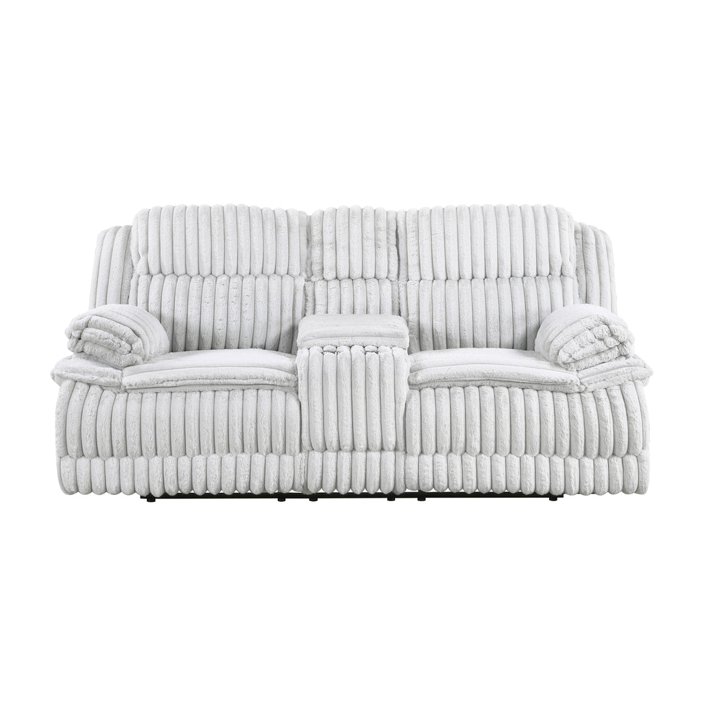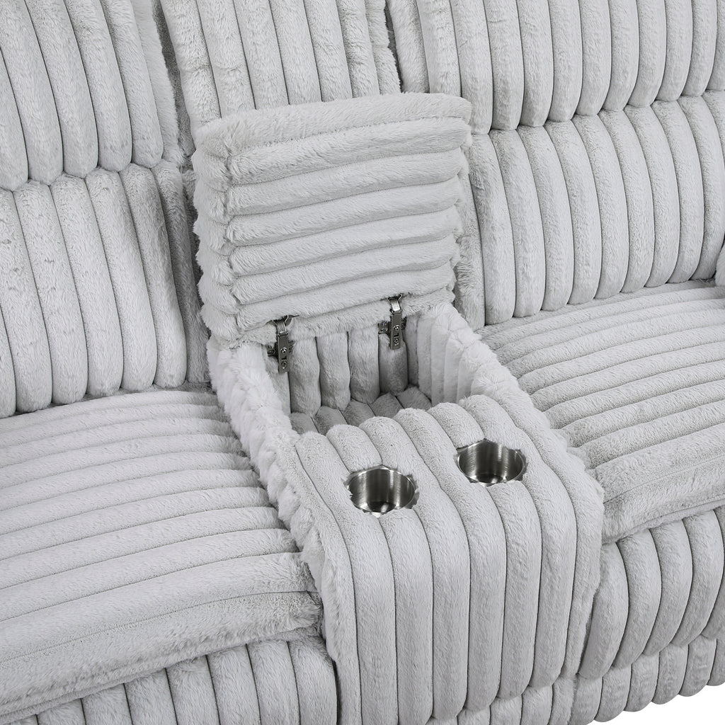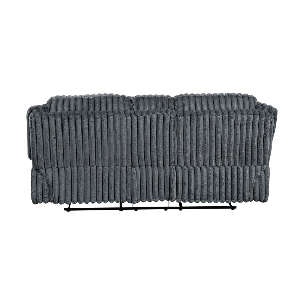Indulge in unparalleled comfort and functionality with our double reclining loveseat, featuring a convenient center console – the ultimate addition to your living room or entertainment area. Upholstered in sumptuously soft corduroy fabric, this loveseat offers an inviting texture and sophisticated appeal that complements any decor. Both seats feature a smooth tab-pull reclining mechanism, allowing you and a loved one to effortlessly recline and unwind. The integrated center storage console with two cup holders keeps your essentials organized and beverages within reach, making movie nights and relaxation even more enjoyable. Built with a robust frame and supportive cushioning, this loveseat promises years of luxurious comfort and style.