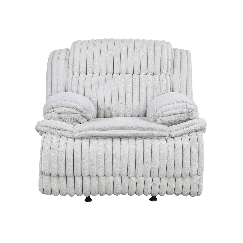 Indulge in ultimate comfort and modern style with our luxurious glider recliner chair, designed to be the perfect addition to any living space. Upholstered in sumptuously soft corduroy fabric, this recliner offers an inviting texture and sophisticated look that complements various decors. The smooth tab-pull reclining mechanism allows you to effortlessly transition into your preferred position, whether you're reading, watching TV, or simply unwinding after a long day. Engineered for lasting durability and support, its robust construction ensures years of relaxation, making it an ideal choice for unwinding in style and comfort.