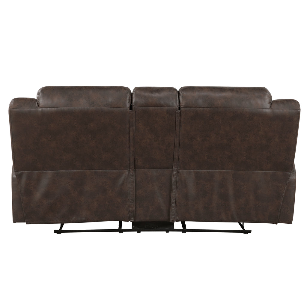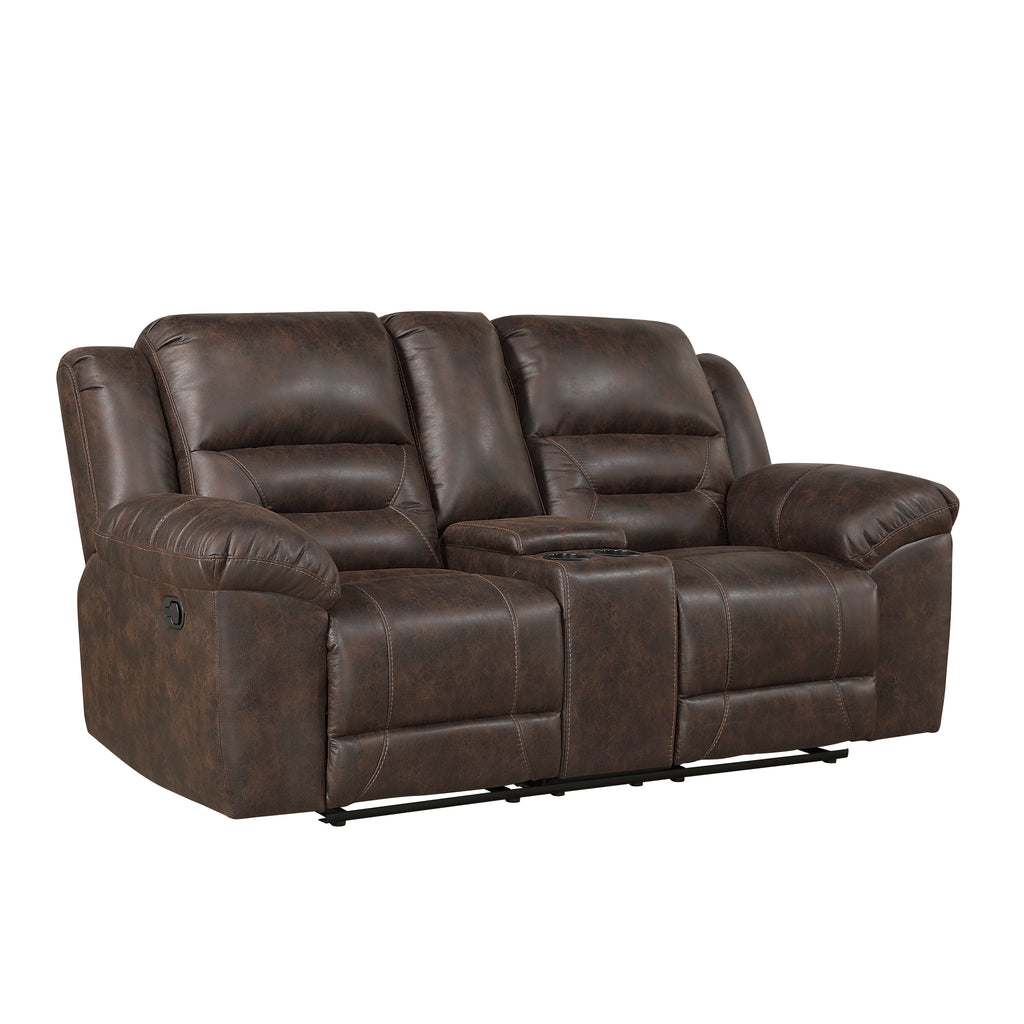 The Hazen Collection’s versatile style and functional design will be an inviting addition to your home’s living room. Dual end recliners are featured on love seat, with its center console providing secure storage of beverages via the two cupholders and a lift-top storage compartment. The reclining mechanisms of the love seat are engaged with a pull of their side mounted tabs, taking you from seated to prone in an easy motion. Black polished microfiber upholstery covers the plush pillow-top arms and contoured seating, creating a perfect combination ready for relaxation.