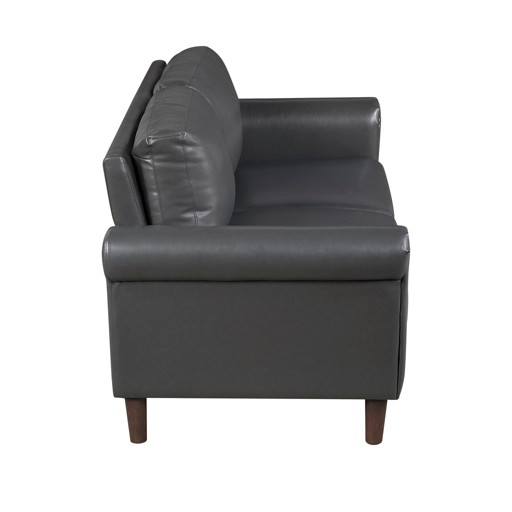 Enhance your space with this mid-century modern faux leather loveseat, offering a perfect blend of classic sophistication and contemporary comfort. Featuring rolled arms, plush seat cushions, and a sleek silhouette, this 2-seater sofa adds a refined touch to any setting. The durable faux leather upholstery provides a luxurious look with easy maintenance, while the sturdy wooden frame and tapered legs ensure long-lasting stability. Whether placed in a living room, apartment, office, or lounge area, this loveseat delivers comfortable seating with timeless elegance, making it an ideal centerpiece for relaxation and entertaining.