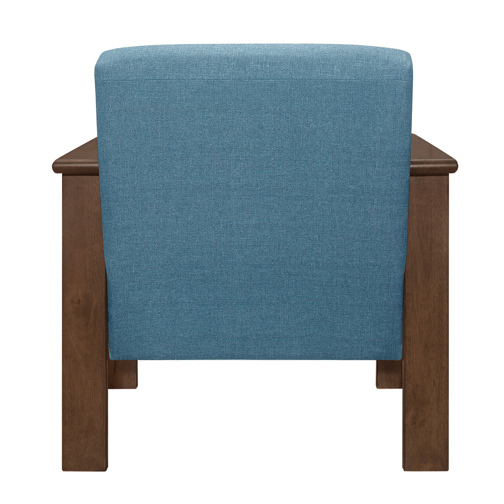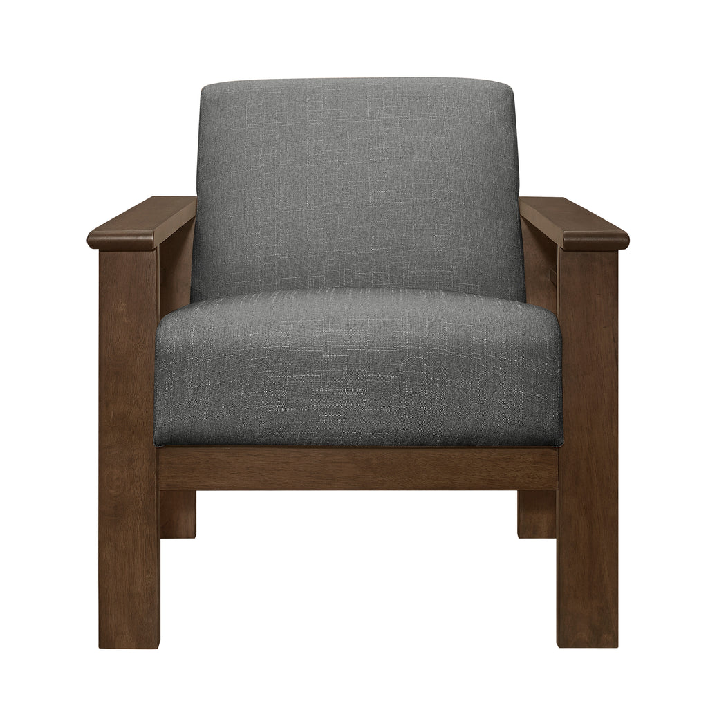 Providing accent to the transitional surroundings of your home is the Helena Collection. Styled with a nod to the Arts & Crafts era, the chair’s solid wood construction features a walnut finish, vertical slat accent on the arms, as well as clever and convenient storage space located between the seat and arm profile. The padded seat and back of the chair is covered with light brown textured fabric upholstery.
