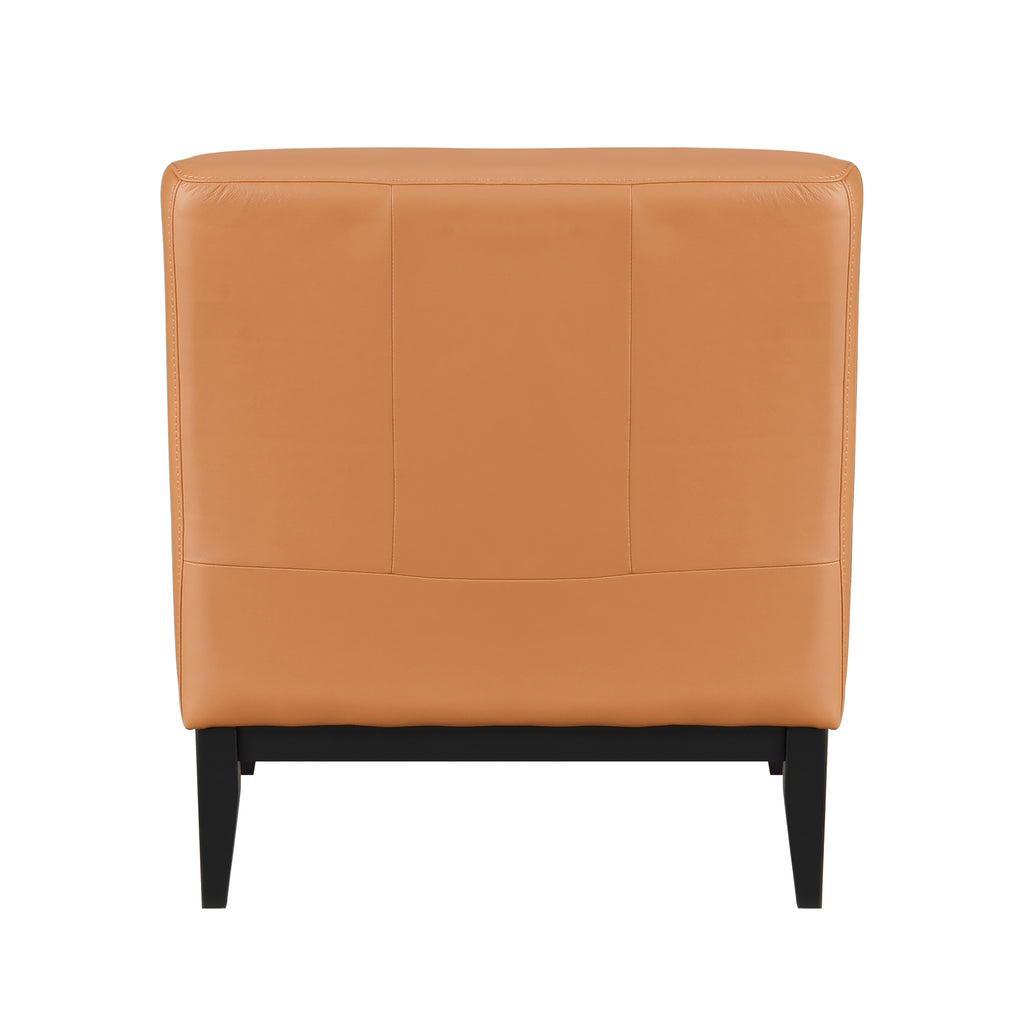 Elevate your living space with this sophisticated and comfortable slipper chair. Upholstered in 100% top grain leather, this chair offers a luxurious feel and timeless elegance. The solid wood and plywood frame ensures durability, while the high-density foam seat cushions provide exceptional comfort for extended relaxation. The attached back and seat cushions maintain a sleek profile, and the solid wood legs in a black finish add a modern touch. With a robust 300lbs weight capacity, this chair is designed to provide both style and support. Assembly is required, but the addition of this refined leather slipper chair will undoubtedly enhance the aesthetic of any room.