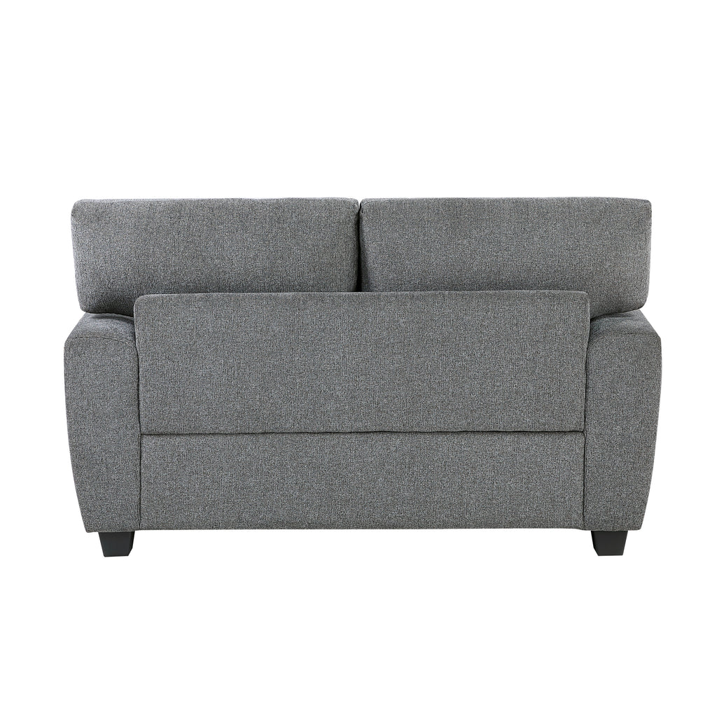 Enhance your living space with this versatile and stylish gray Loveseat. Featuring reversible back and seat cushions, this loveseat offers extended comfort and longevity, allowing you to easily refresh its appearance. Two decorative pillows add a touch of pattern and comfort. The textured dark gray fabric upholstery complements a variety of décor styles, while the nailhead trim detailing adds a touch of sophistication. The sturdy block feet provide a stable foundation, making this loveseat a perfect addition to apartments, small living rooms, or cozy nooks. Enjoy the perfect blend of comfort, style, and practicality with this contemporary 2-seater sofa.