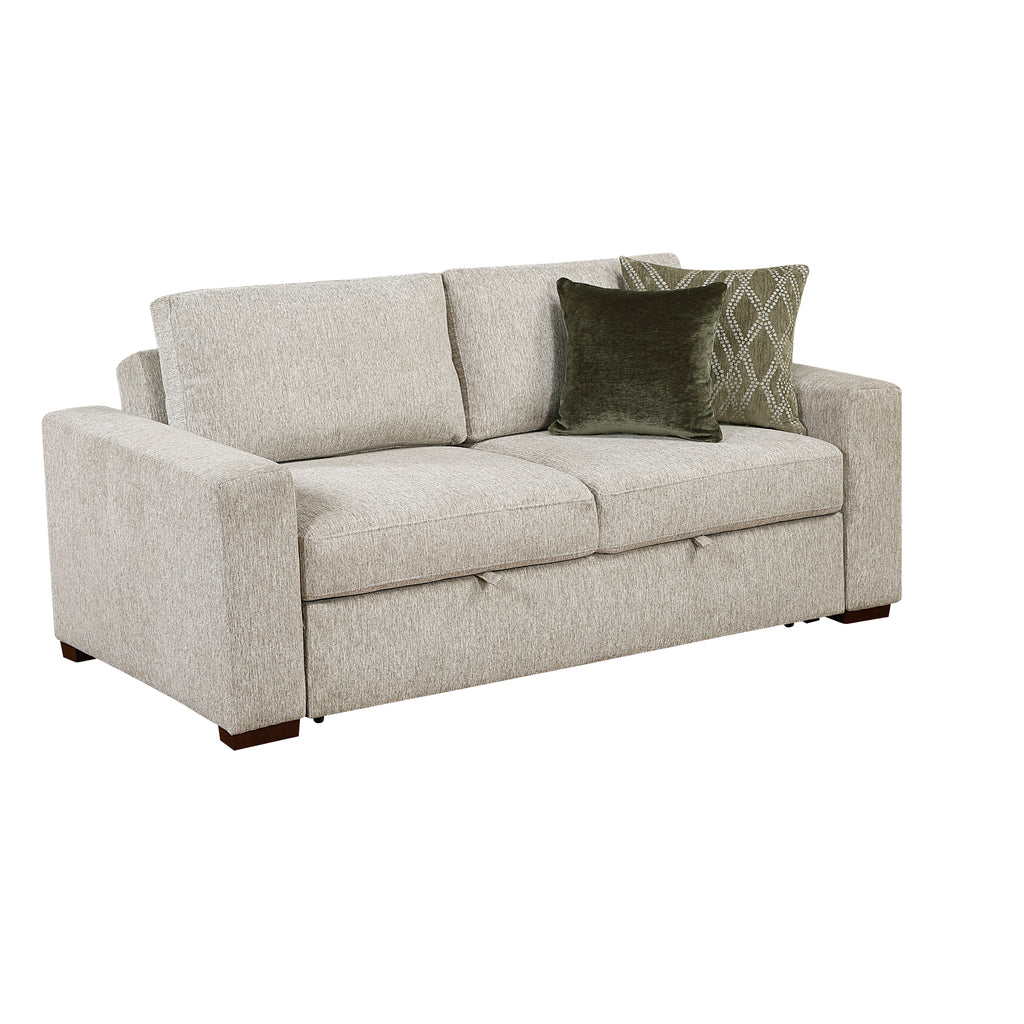 Maximize your space without compromising on comfort and style with the innovative sleeper sofa. Upholstered in a soft and resilient textured microfiber, this versatile piece seamlessly transitions from a comfortable sofa to a convenient extra bed for overnight guests. Enjoy supportive seating thanks to the high-density foam padding over pocket coils, while the reversible back cushions and attached seat cushions offer lasting comfort and practicality. The clever pull-out bed with casters tucks neatly away under the seat, and the drop-down back provides additional sleeping surface. Accented with elegant espresso-finished solid wood feet and including two coordinating décor pillows, this sleeper sofa is the perfect solution for smaller spaces or those who love to host.