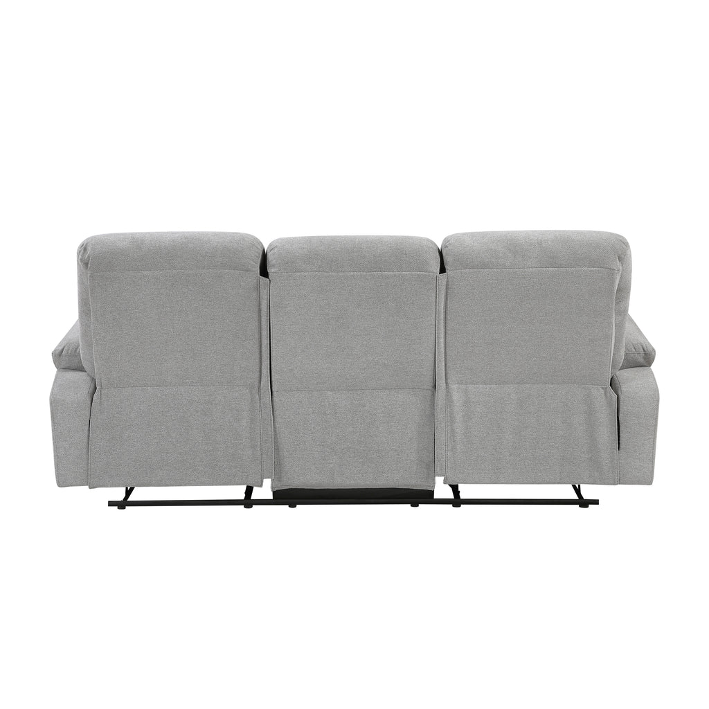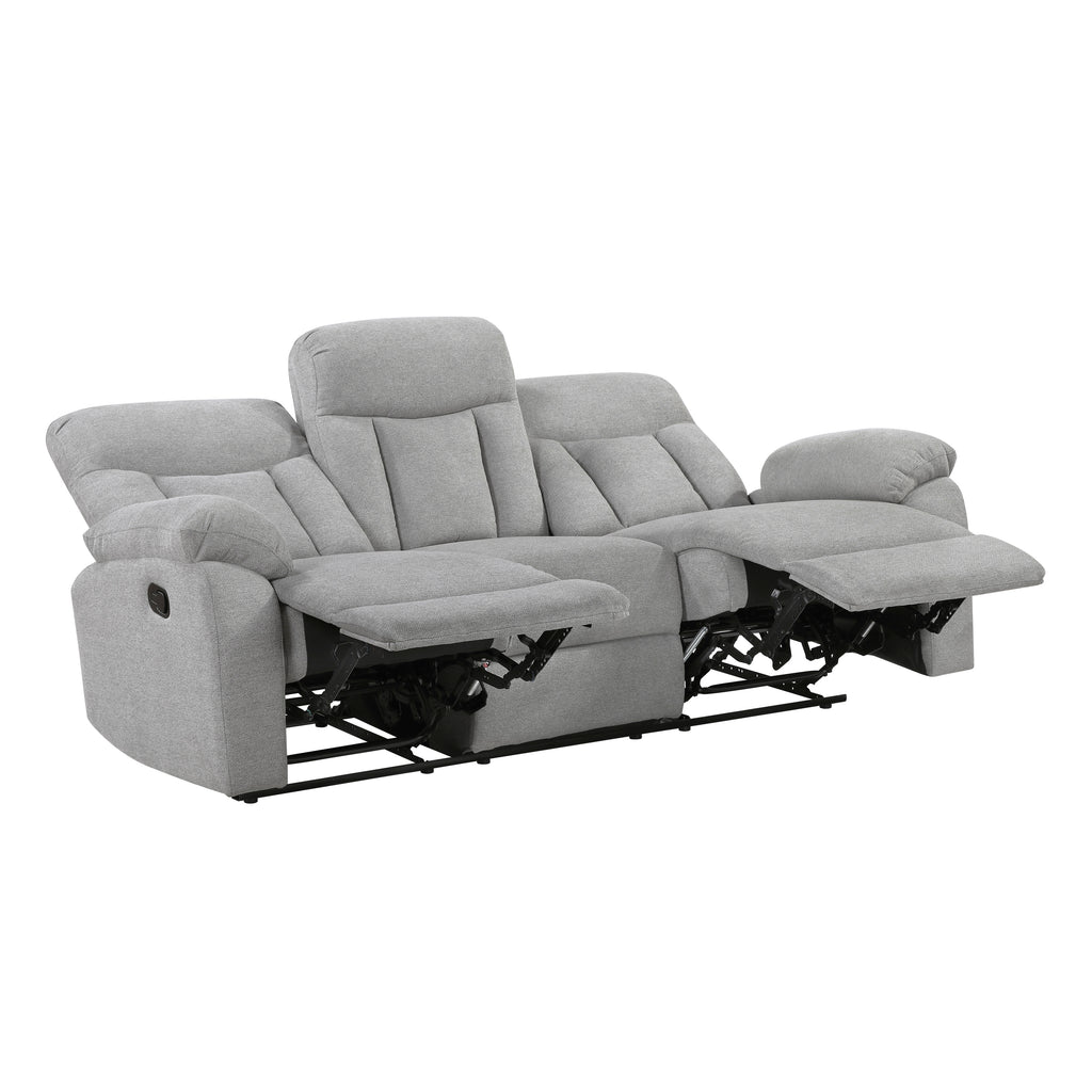 Experience shared comfort and relaxation with this gray chenille double reclining sofa, designed for both style and functionality. Featuring a robust solid wood and plywood frame with metal reinforced seats, foam padding over pocket coils, and soft chenille fabric upholstery, this sofa offers both durability and a luxurious seating experience. The tab pull reclining motion allows each person to recline independently. With a 300lb weight capacity per seat (900lb total), this sofa is perfect for enhancing your living room or entertainment space with a blend of comfort and convenience.