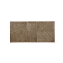 Define your living room with this stylish dining set. Light oak finishes warm the set, creating an inviting ambiance with rustic undertones. Chairs are exquisitely detailed with framing nailhead trim and soft curves along the arched backs. Keep dinnerware and spirits handy with the server that features unique x-cross cabinets, a dedicated wine rack and stemware glass holders. Timeless and functional, this dining set will keep your home organized, cozy and comfortable.