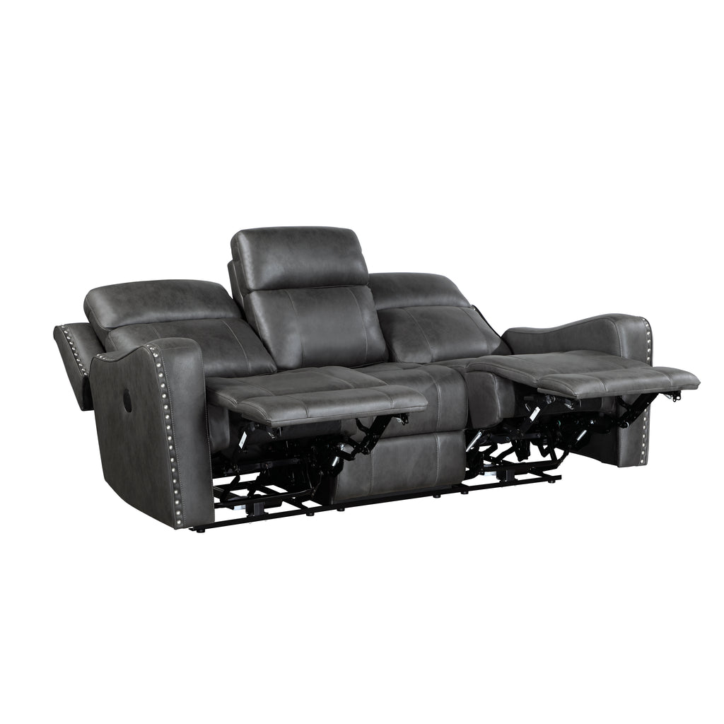 Transform your living space into a haven of relaxation with the power double reclining sofa. Upholstered in a sleek, polished microfiber and accented with sophisticated nailhead trim, this sofa combines luxurious style with modern convenience. Featuring individual one-touch power controls for each of the two reclining seats, you and a loved one can effortlessly find your perfect lounging positions. Stay connected and powered up with the integrated USB charging ports conveniently located on each side. Sink into the supportive comfort of the dacron-wrapped high-density foam seat cushions, built upon a robust solid wood and plywood frame with metal-reinforced seating, ensuring lasting durability and a weight capacity of 300lbs per seat. The attached back and seat cushions maintain a clean and tailored aesthetic, making the power reclining sofa an ideal centerpiece for any contemporary home seeking ultimate comfort and modern functionality.