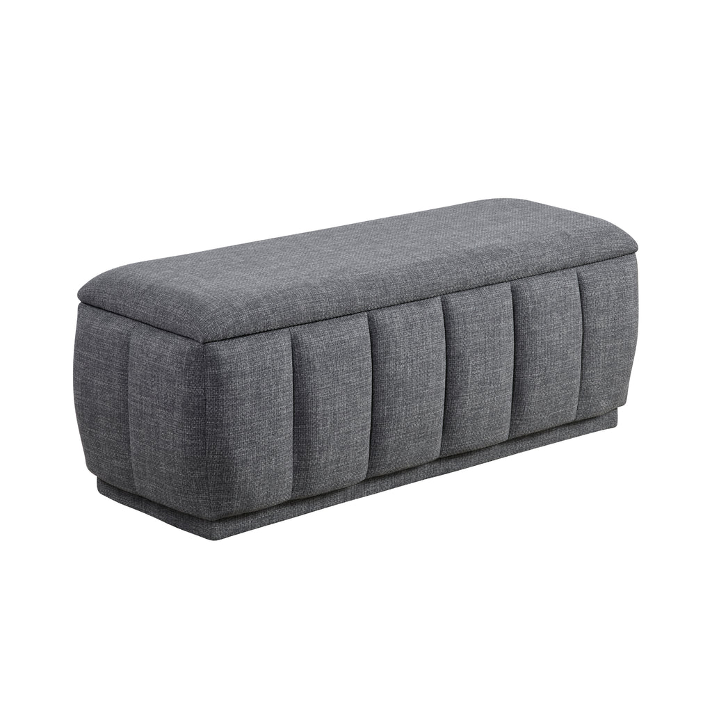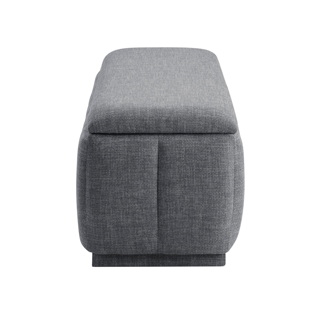 Maximize your storage and seating options with this stylish gray textured fabric storage bench. Featuring a sturdy plywood frame, foam cushioned seat, and durable textured fabric upholstery, this bench offers both comfort and practicality. The spacious interior storage compartment provides a convenient place to declutter your space, making it perfect for blankets, pillows, or toys. With no assembly required and a 300lb weight capacity, this storage bench is ready to enhance your living room, bedroom, or entryway right out of the box.