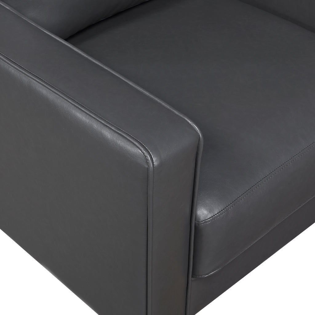 The elements that define modern style create a timeless look for your home with the addition of the Malcolm Collection. Track-style arms and defining welt lend a tailored aesthetic to the clean lines of the sofa making the piece well-suited for modern, transitional, rustic, or industrial inspired spaces. The collection is covered in chocolate faux leather upholstery further lending to the decorative versatility of this modern-classic offering.