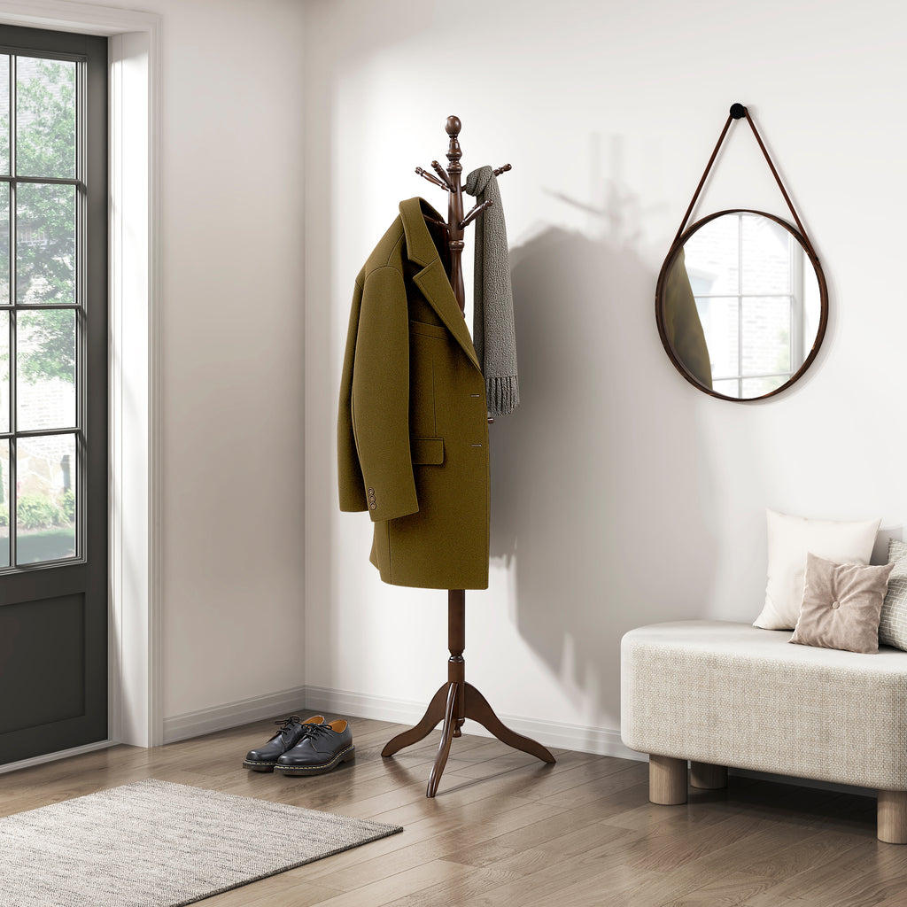Organize your entryway or mudroom with timeless style and exceptional functionality with this classic coat rack. Crafted from solid wood and finished in a rich dark brown, this piece offers robust stability and a sophisticated aesthetic that complements traditional and modern decors alike. Its clever 3-tier design features a total of 10 hanging hooks, providing ample space for coats, hats, scarves, and bags, helping to keep your home tidy and welcoming. While assembly is required, its durable construction and generous storage capacity make it an ideal and practical addition to any busy household, offering a convenient solution for all your outerwear needs.
