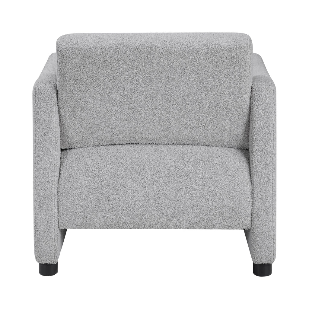 Elevate your living space with the modern elegance of this beige boucle armchair. Featuring a sturdy plywood frame and foam padding over pocket coils, this chair offers exceptional comfort and support. The luxurious boucle fabric upholstery adds a touch of sophistication, while the clean lines and contemporary design enhance any room's aesthetic. The attached back and seat cushions provide a seamless look and feel, and with a 300lb weight capacity and easy assembly, this armchair is perfect for creating a stylish and inviting atmosphere in your living room, bedroom, or reading nook.