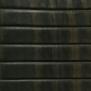 Spice up your casual space with the ranch-style influence of this seven-piece counter height dining set. Indulge in a calm vibe with a set anchored by a natural finish sheesham table featuring a spacious rectangular top and tapered, rounded legs. A dark apron with geometric design detail adds an exotic effect. Mid-Century Modern influence adds to comfortable counter stools with scoop seats and a thick back, both with horizontally channeled leather upholstery, as metal framing features iconic slender rounded, splayed legs. Set includes one rectangular counter height table and six counter stools.