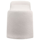 Soften the foot of your bed or a living room wall with the inviting nature of a modern accent bench. It's a charming choice, offering an interesting silhouette complete with rounded supports that extend upward to create arms. The bench is padded with foam for excellent comfort. Ivory boucle upholstery fabric is soft and textured, creating depth and dimensionality in your space. This bench features a contemporary profile, perfect for a modern bedroom, foyer, or living room.