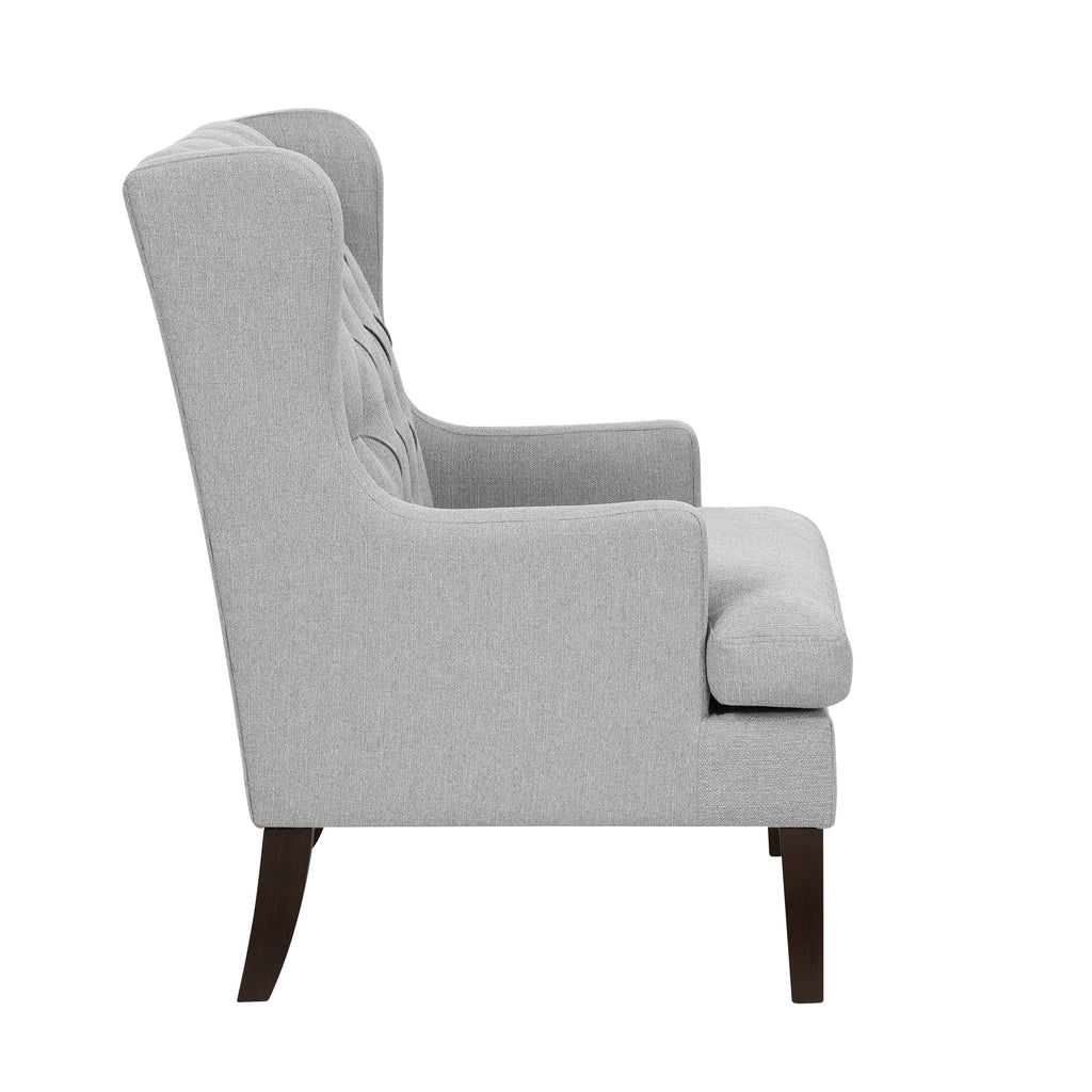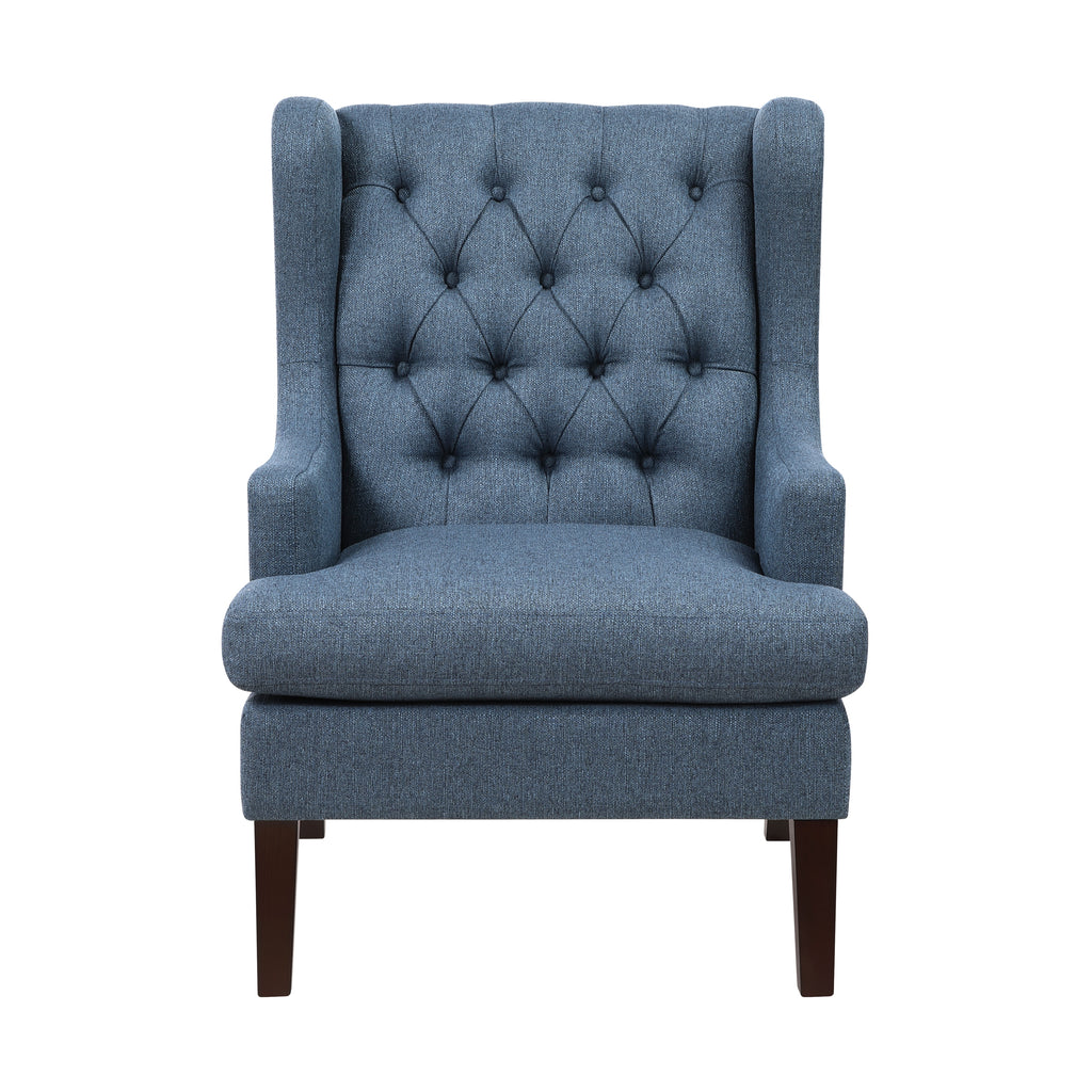 Bring a touch of sophisticated elegance to your home with this tufted wingback accent chair, designed for both comfort and timeless style. The high-back silhouette with deep button tufting creates a luxurious look, while the plush cushioned seat provides excellent support for relaxation. Crafted with soft yet durable fabric upholstery, this chair is complemented by sturdy wooden legs, ensuring long-lasting durability and stability. Whether placed in a living room, bedroom, reading nook, or office, this chair makes a stylish statement while offering a cozy retreat for lounging or entertaining.