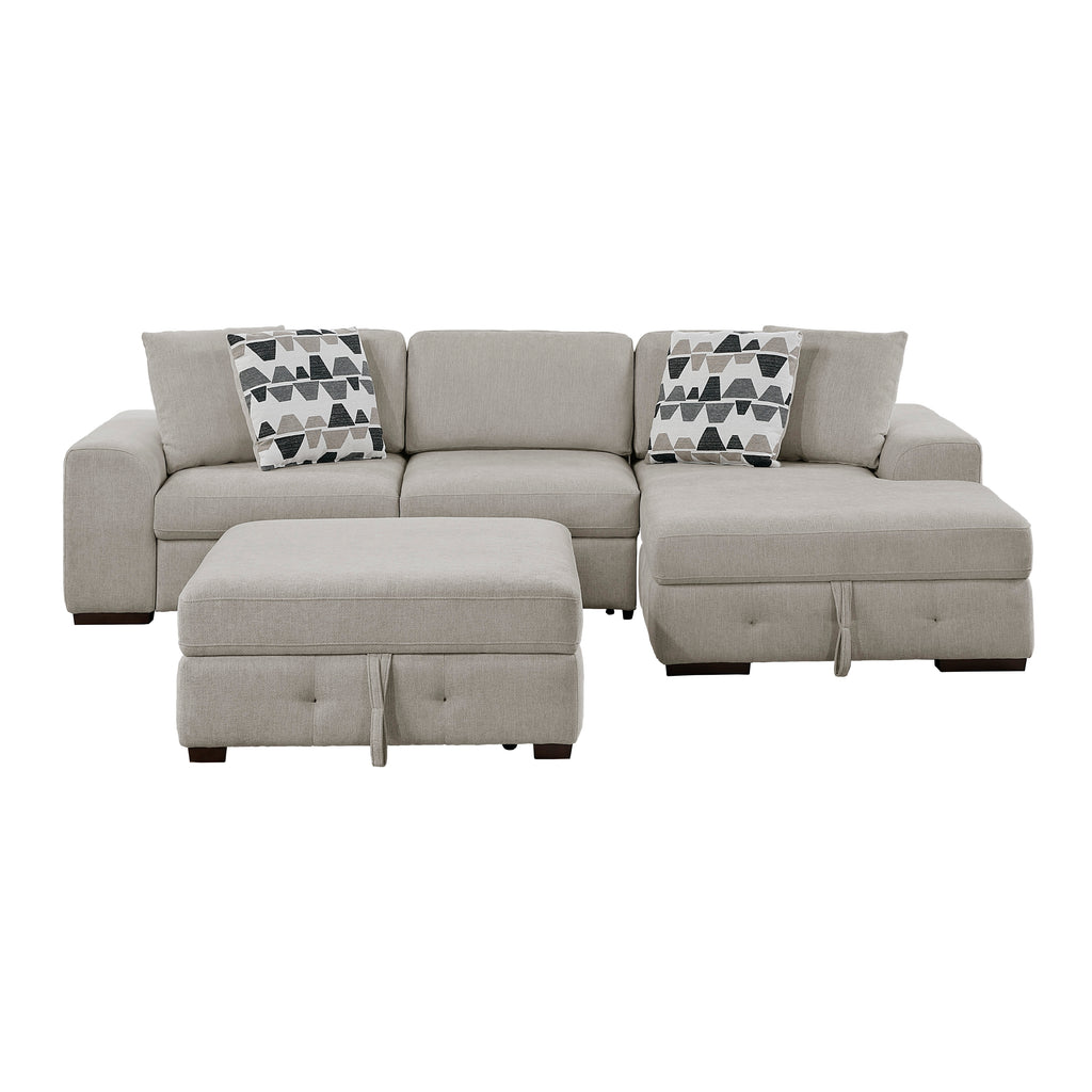 - Includes 3 pieces: Left side 2-seater, right side chaise and ottoman