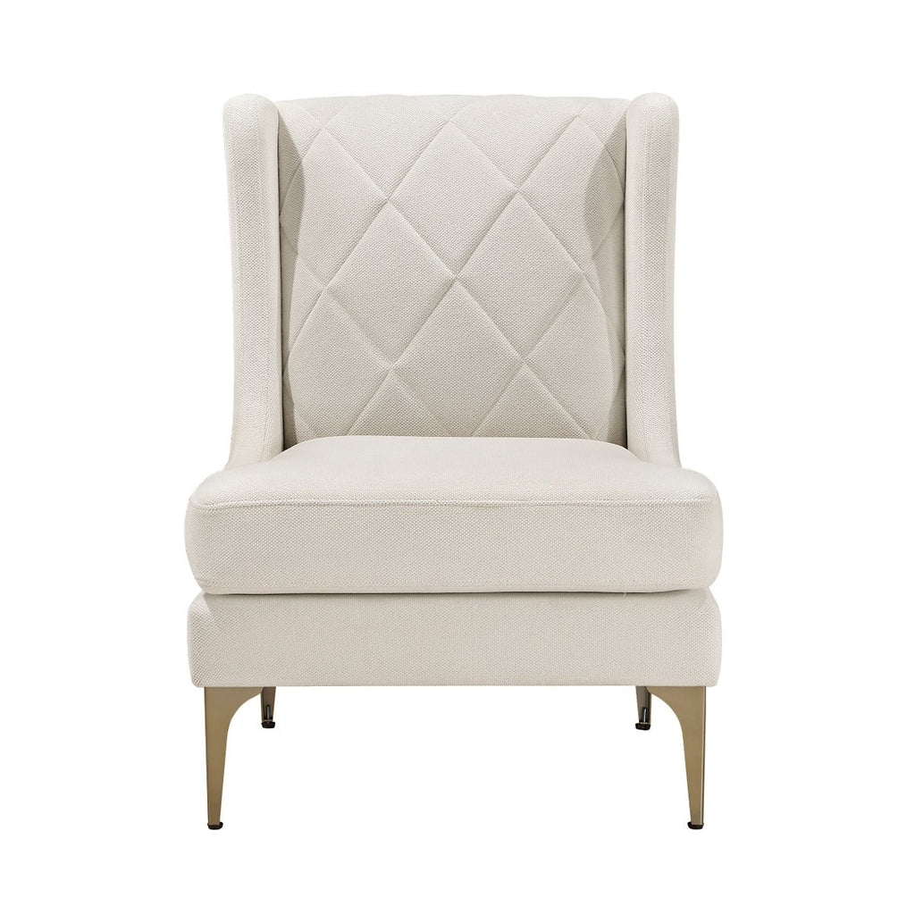 Add a touch of contemporary elegance and exceptional comfort to your living space with this blue chenille accent chair. Featuring a sturdy plywood frame, foam padding over pocket coils, and soft chenille fabric upholstery, this chair offers both durability and a luxurious seating experience. The diamond-stitched chair back adds a touch of modern sophistication, while the reversible seat cushion and removable cover make maintenance a breeze. The brushed gold finish metal legs provide a stylish foundation. With a 300lb weight capacity and easy assembly, this armchair is perfect for enhancing your living room, bedroom, or reading nook with a blend of style and practicality.
