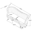 Art Deco never looked so dramatic! This retro-inspired seating set features a vivid deep blue velvet upholstery throughout, complementing by mid century modern style tapered legs in a warm gold hue. Extra details such as channel tufted interior and a vintage kidney-shaped silhouette truly make this seating ensemble one of a kind. A twist on the iconic tuxedo style, this seating group has sleek, slim track arms and an inverted camelback backrest that flows into one another. Boasting a regal aesthetic, each furniture piece offers to be a centerpiece.