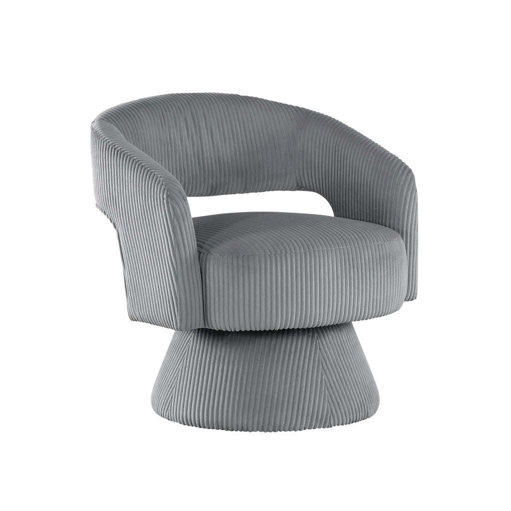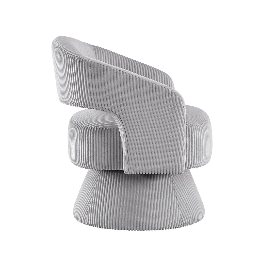 Elevate your home with this modern corduroy swivel accent chair, featuring a unique textured design and soft corduroy upholstery. Perfect for those seeking a blend of style and comfort, this chair’s eye-catching shape and luxurious fabric add a sophisticated touch to any space. The 360-degree swivel base allows for versatile movement, making it an ideal choice for living rooms, bedrooms, or stylish home offices. Its minimalist aesthetic and plush seating bring both functionality and elegance to contemporary interiors.
