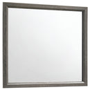 The modern appeal of all things gray is taken to unique heights in this five-piece bedroom set for the master or second bedroom. The entire set is finished in a bold gray oak with understated black rectangular accents and frames. The high headboard and low footboard of the majestic queen bed have rectangular panels outlined in timeless black. The well-appointed chest, nightstand, and dresser have roomy drawers with burnished silvery handles. The rectangular dresser mirror has clean, crisp lines to complete the look of this resplendent modern bedroom set.