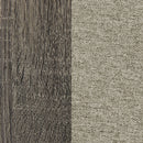 Introduce refined style in an approachable bedroom ensemble with this transitional wooden bed. With an upholstered headboard, it delivers impeccable comfort for lounging and relaxation. A brown oak wood grain finish pairs with laminate, delivering the perfect blend of style and durability. Tan fabric pairs with foam cushioning, delivering a complementary color tone that remains neutral in your bedroom. The bed features a tall headboard paired with a low footboard, creating an open, airy profile.